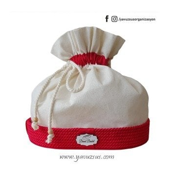 Kırmızı Dekorlu Keseli Ekmek Sepeti