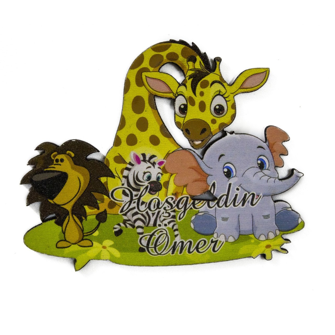 Küçük UV Baskılı Safari Figürlü Ahşap Süs 5x6,5cm