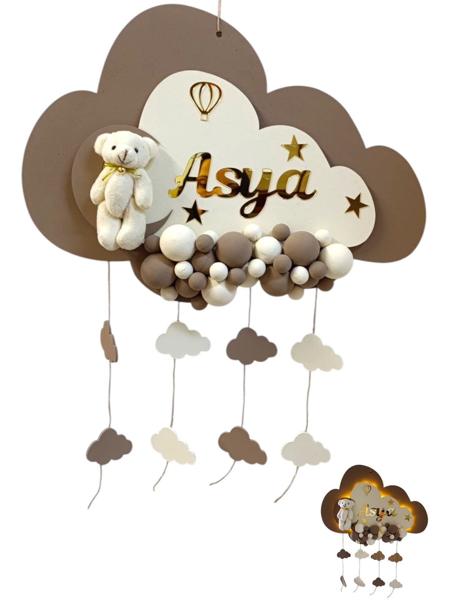 Zemini kahve Işıklı Kabartmalı Bulut Kapı Süsü