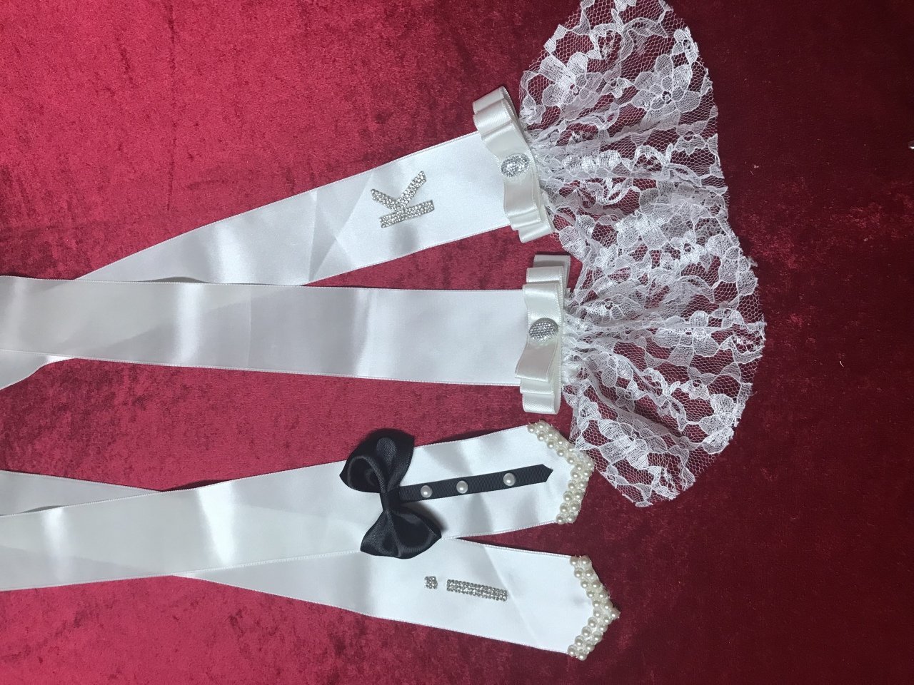 Eteği güpürlü üçgen papyonlu takı kurdelesi takımı